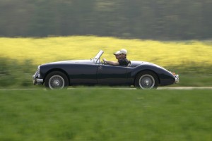 Au volant d’une MG A sur une route de charme… sensation de plaisir…